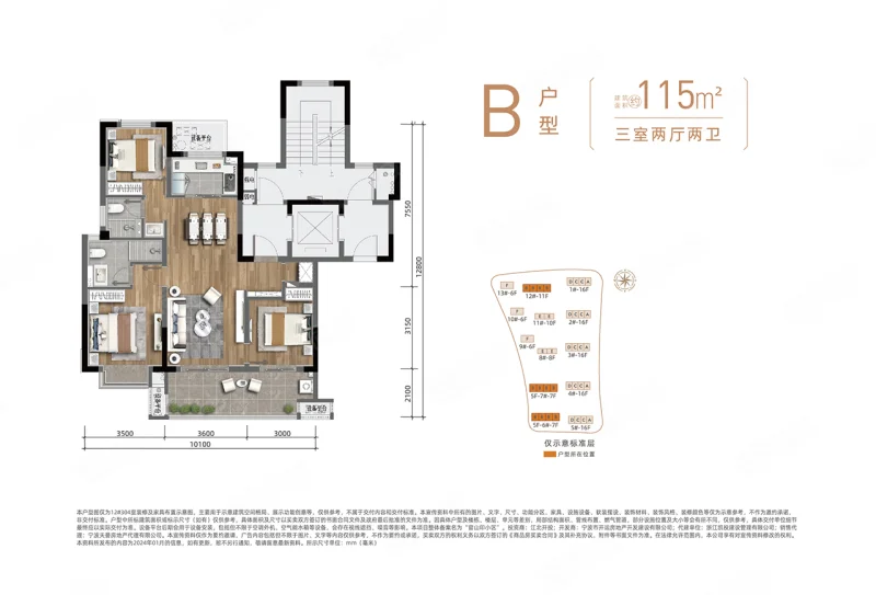 3 室 2 厅 1 卫